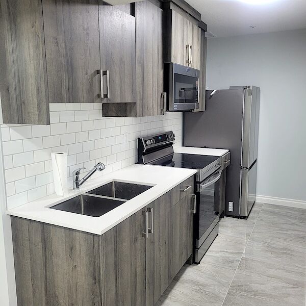 Spacious suite with two bedrooms, 1 bathroom, laundry , front and back entrance
