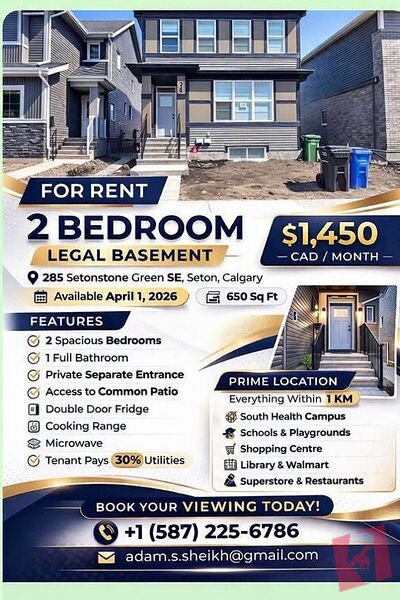 ✨Bright & Spacious 2-Bedroom Legal Basement Suite in Seton-Garage Included✨