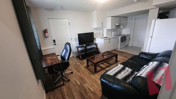Quiet 1 bedroom basement suite with living room and storage